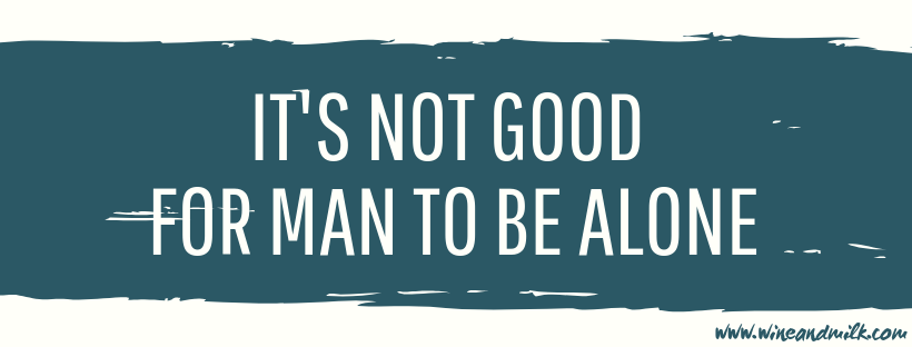 Next week I'll talk out how both male and female are created in God's Image and what that means. But this week, I want to talk, briefly, about how God created man but it was not good for him to be alone. It's one of my favorite soapboxes. The LORD God said, "It is not … Continue reading It is not good for man to be alone.